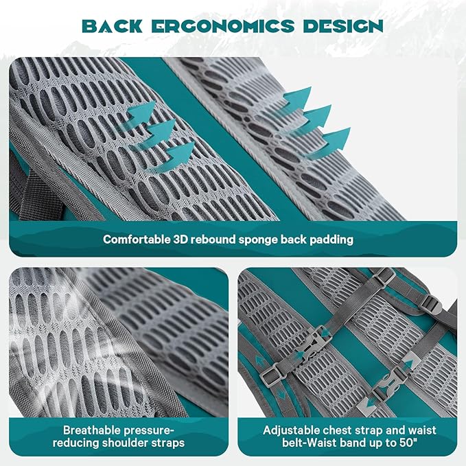 - Hands-Free Leakproof Water Bladder:Stay hydrated on the go with a 2-liter bladder and bilateral hose outlets. The large opening design of the bladder ensures easy filling and cleaning. The separate insulated compartment provides hours of cooling with ice packs. The bladder is replaceable and supports up to 3 liters.