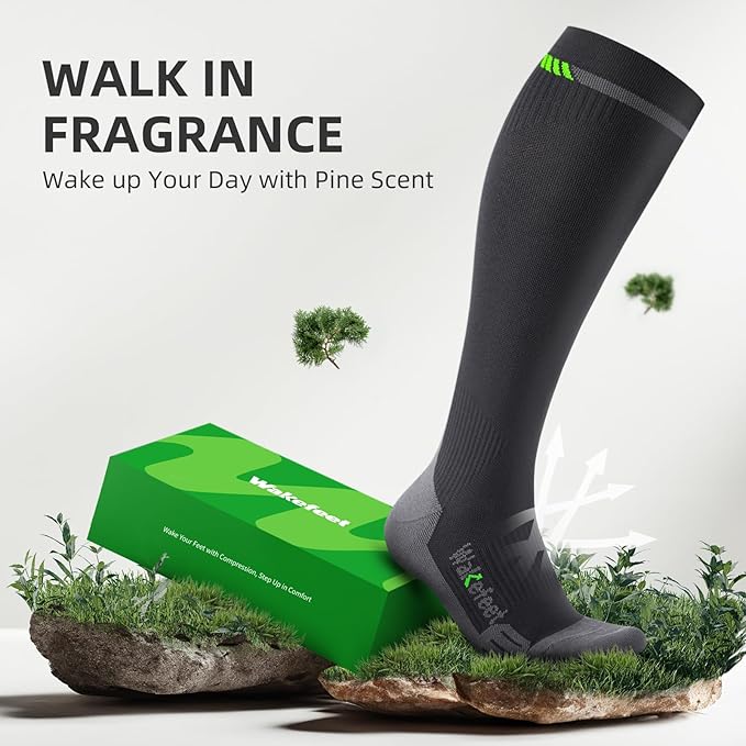 - Aroma Infusion And Premium Packaging: enhance your happiness! Even buying a pair of compression stockings can make you feel happy as if received a gift. We always put customers first. The fresh smell brings you the pretty pleasure when you open the package and wear it. Please note that rubbing the compression socks men 20-30 mmhg can better release the fragrance.