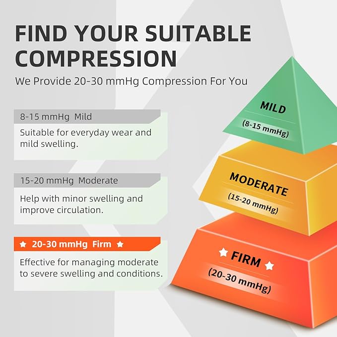 - Gradient Pressure Promotes Blood Circulation: The medical compression socks 20-30 mmHg effectively returns blood to the heart, enhances blood circulation, relieves fatigue and swelling, improves leg comfort, and prevents lower extremity venous. In addition, compression socks men women can better promote postoperative recovery.