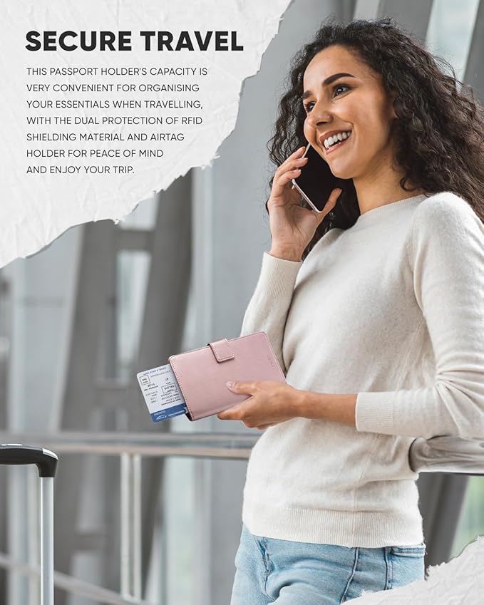- Passport & Airtag Holder Combo Design- The built-in holder compatible with airtag to locate your passport while travelling. Keep track of your passport book cover wherever you go and never worry about forgetting where you left it.