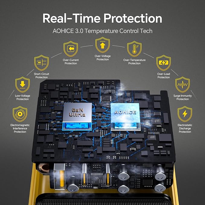 - Comprehensive Real-Time Protection: TThe self-developed AOHICE 3.0 temperature control technology intelligently manages heat to ensure the Youth 100W PD Charger remains in peak condition even during extended use. It effectively prevents overheating, safeguarding both the charger and your devices, and prolonging their lifespan