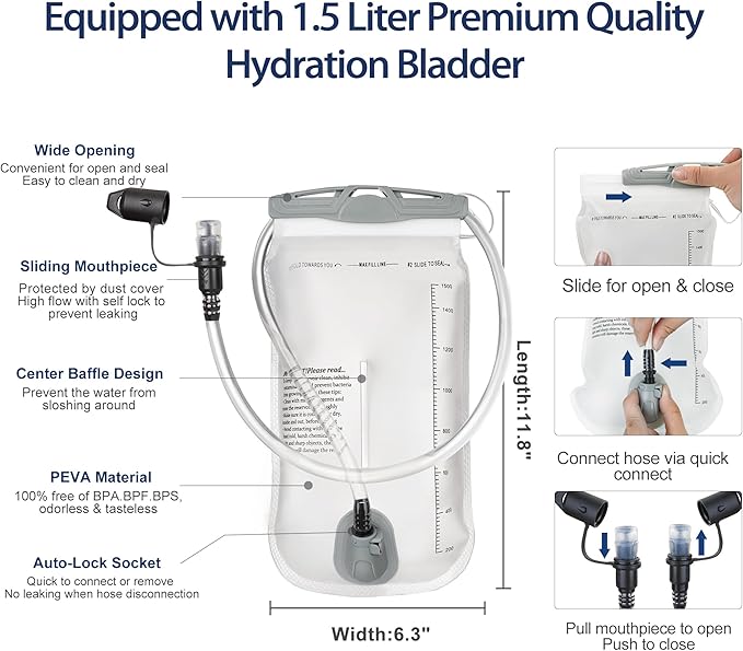 - Contain Water Bladder: Semsty water vest for running with 1.5L water reservoir. The bladder is BPA-free and anti-leak guaranteed. Stay hydrated in any time without taking an extra water bottle. Convenient and frees up your hands;If you have any problems, please reach out to us, we will reply within 24hrs. (We provide replacement services for quality problems within 1 year and lifetime customer service)