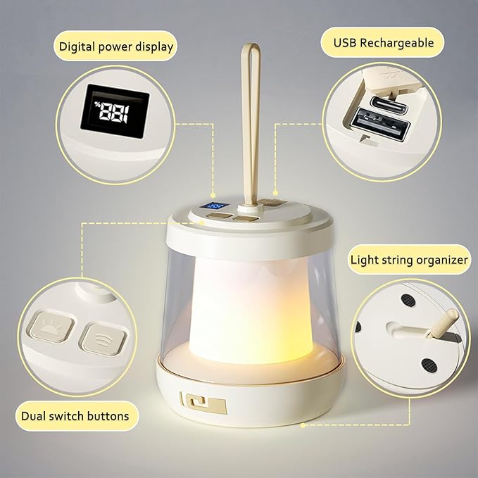 - 【Multi-functional All-in-One Camping Light String】Our All-in-One Camping Light String is a combination of a camping light and a string of lights, which is perfect for illuminating your tent, and also suitable for putting the lights in your bedroom as a night light, creating a romantic and warm cozy atmosphere.