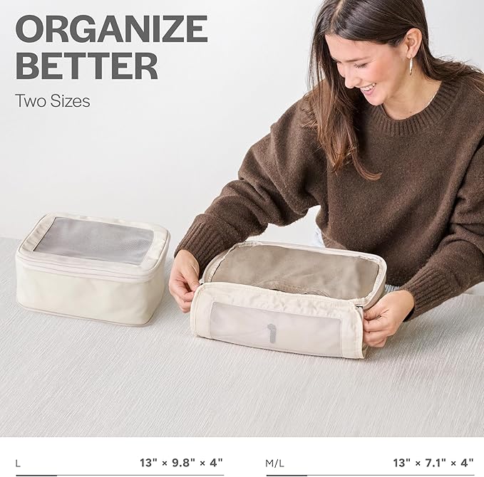 Aerotrunk Compression Packing Cubes for Travel - Luggage Organizer Bags - Double Zipper Packing Cubes for Suitcases (2-Pack, Beige)
