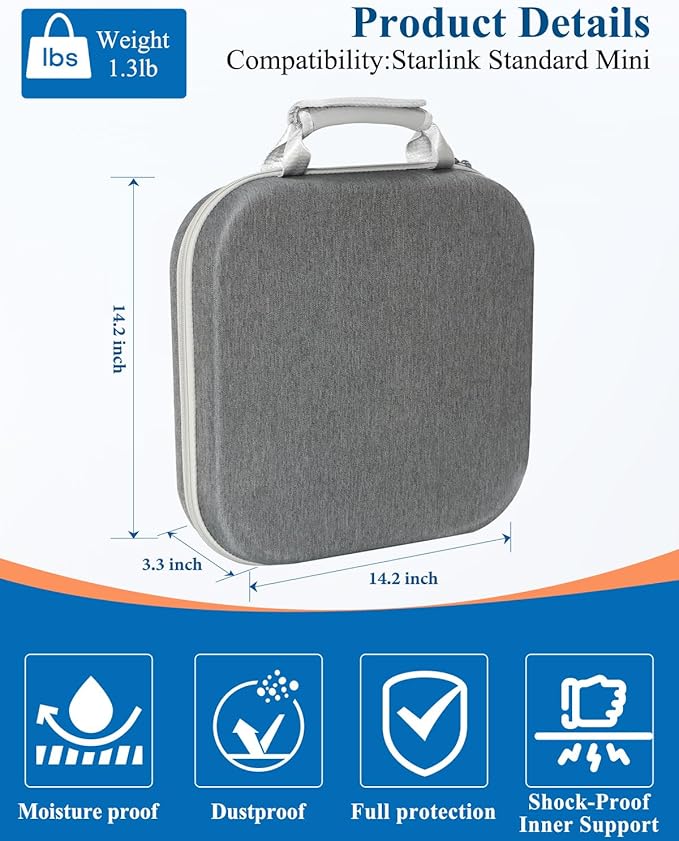 - 【Custom Fit for Starlink Mini】This premium storage case is designed specifically for the Starlink Mini. It includes a protective cushion and sponge holder, providing optimal organization for your device and accessories. Dimensions: 14.2in x 14.2in x 3.3in; Weight: 1.3lbs. Note: The Starlink Mini device is not included, only the carry case.