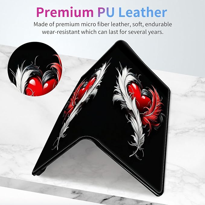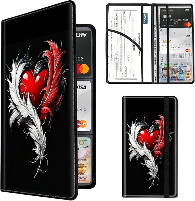 Car Registration and Insurance Holder,Leather Insurance License and Registration Card Holder for Car Glove Box, Auto Truck Document Holder Organizer for Men Women-Red Heart with Feather