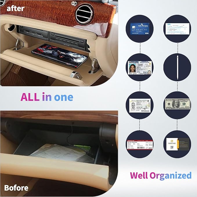 - 【CAR DOCUMENT HOLDER ORGANIZER】Multifunctional 7 pockets and 1 pen holder. 4 card holder for driver's license, ID card, credit card,AAA card,service cards, contact card or receipt etc. 2 large pockets for car registrations and insurance or other essential documents. With 1 pen holder loop on side, so no more looking for a pen when you need to write. * Not includ pen *