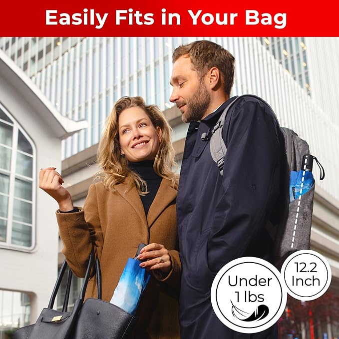 - Engineered for tough storms, this windproof umbrella features a 2025 upgraded frame with 9 reinforced fiberglass ribs, making it one of the most durable compact umbrellas for rain. Its inverted umbrella design resists flipping even in rough winds, offering reliable coverage during commutes and rainy walks. Ideal for business professionals and travelers who need a dependable umbrella large enough to keep them dry.