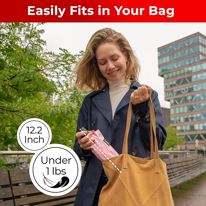 - This compact umbrella for travel measures just 12.2 inches when folded, but opens to a big umbrella with 46" canopy coverage, enough to shelter one person with room to spare. Lightweight and portable, this portable umbrella fits into handbags, backpacks, or glove compartments. From daily commutes to weekend getaways, it's the ultimate wind-resistant umbrella built for freedom in wet weather.