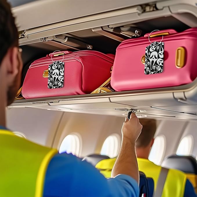 2 Pcs Horror Movie luggage tag, Suitcase Tags with Privacy Flap and Metal Loop, Ghost Spooky Movie Fans Luggage Tags for Suitcases, Identifiers Travel Essentials Bag Tags for Luggage, Gifts for Friend