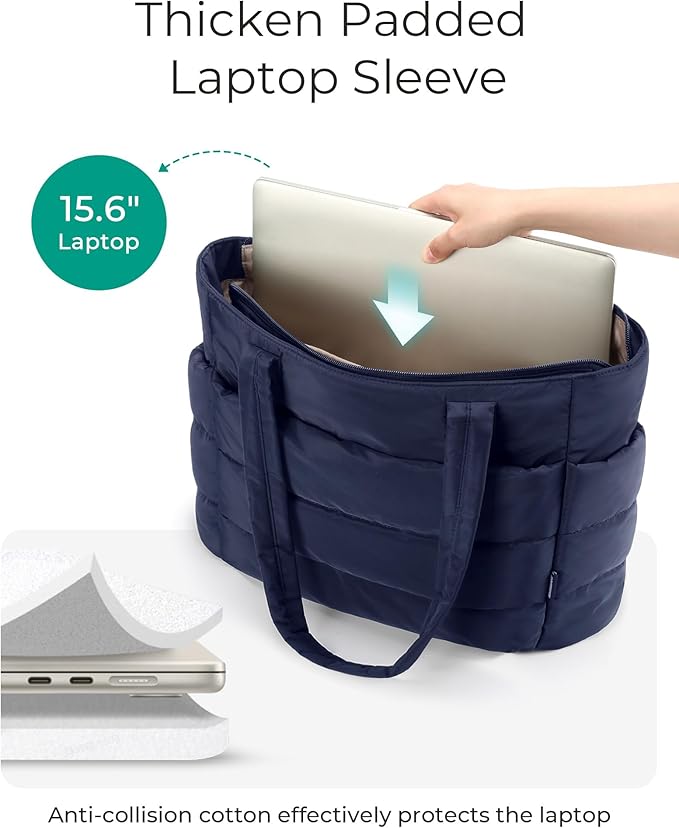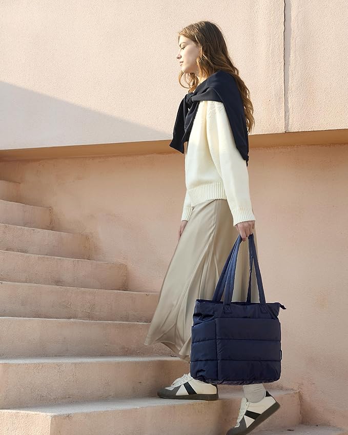 BAGSMART Tote Bag for Women, Lightweight Puffy Tote Bag with Compartments Shoulder Bag Handbag for Travel, Work, Gym