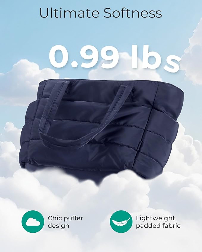 - Ultra Lightweight Material : Standard Size and Slim Size weighs only 0.99 pounds. Small Size weighs only 0.79 pounds. Made of durable, soft and light taslan fabric. The puffer tote bag is easy to carry. Good choice of travel bag.