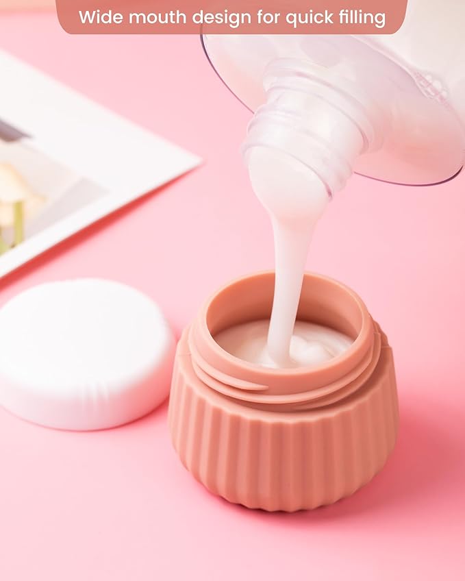 - Travel Essentials: The set includes 4 silicone face cream jars and a rose gold transparent cosmetic bag. Designed for travel, easy to carry and highly functional.