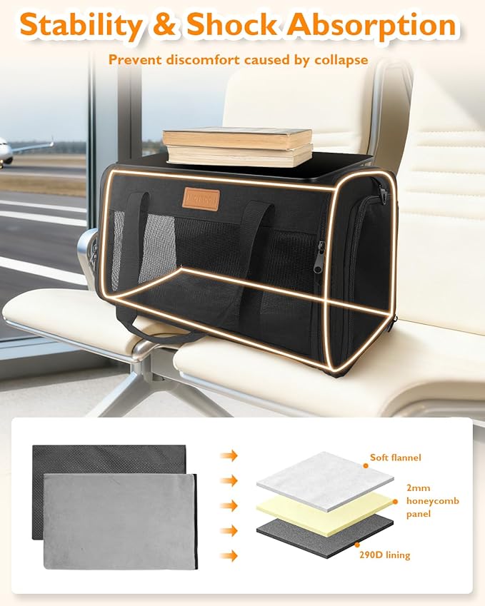 - MORE BREATHABLE AND COMFORTABLE: With breathable mesh panels on 3 sides, the PETUX cat travel carrier promotes proper airflow to keep your pet cool and comfortable. The double-sided cushion design ensures your cat's comfort during long journeys, which allows your pet to rest and relax throughout the flight or car ride. The airline approved pet carrier’s thoughtful structure ensures your pet’s comfort