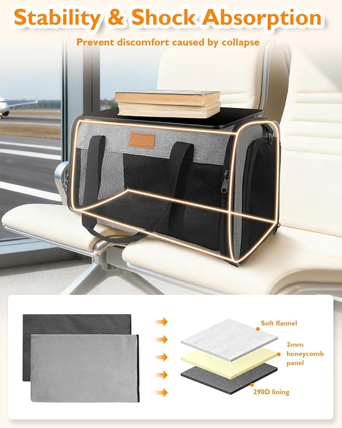 PETUX TSA Approved Pet Carrier in Cabin - 17"x11"x9.5", Underseat, Soft Sided Cat Carriers with Safety Zippers and Anti-Scratch Mesh for Small Cat up to 12 lb, Ideal for Travel and Vet Visit, Grey