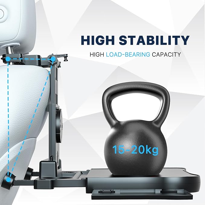 - 【LOAD CAPACITY 15-20KG】The foldable car backseat tray table can also be used to hold heavy objects. The backseat car table is made of high quality ABS material, durable, stable and sturdy, with an excellent load capacity of about 15-20 kg! It can be used in any situation. It's a great car gift!