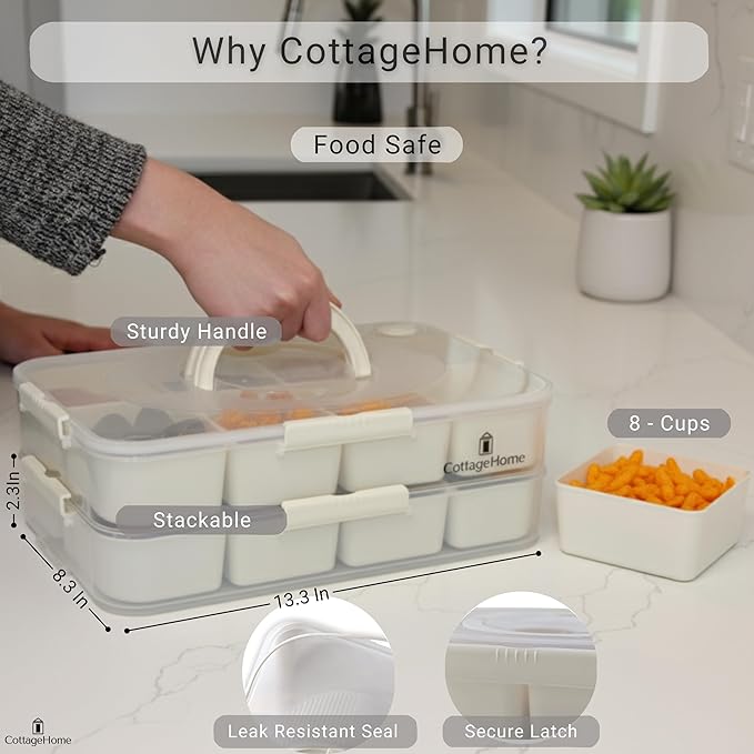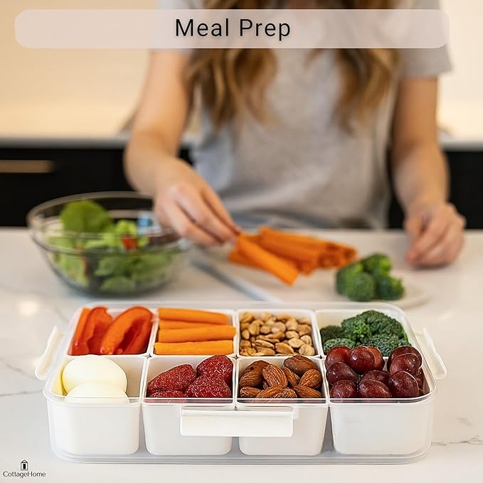 - βοΈ SMART SNACKING SOLUTION - This 2 pack travel snack container includes 8 removable compartments with lids and handles, ideal for storing fruits, veggies, nuts, candy, and snacks, perfect for charcuterie spreads, parties, picnics, and family snacking