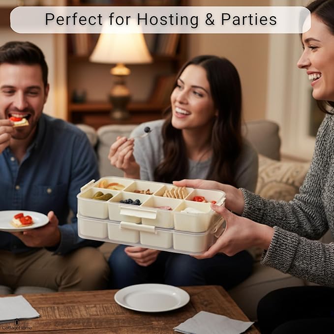 - π TRAVEL FRIENDLY COMPANION - Featuring secure lids and easy carry handles, this divided serving tray keeps snacks fresh and portable, making it perfect for on the go use during road trips, picnics, family outings, or as a travel snack box for organized snacking anywhere
