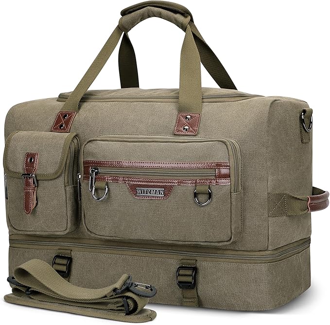 WITZMAN Canvas Weekender Bag Mens Overnight Bag for Traveling Carry on Duffle Bags with Shoes Compartment(A8010 Army Green)