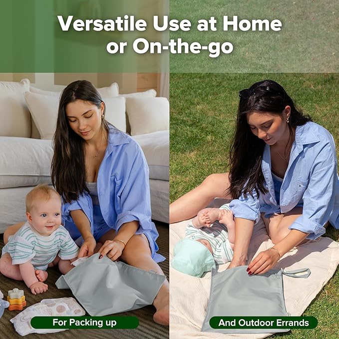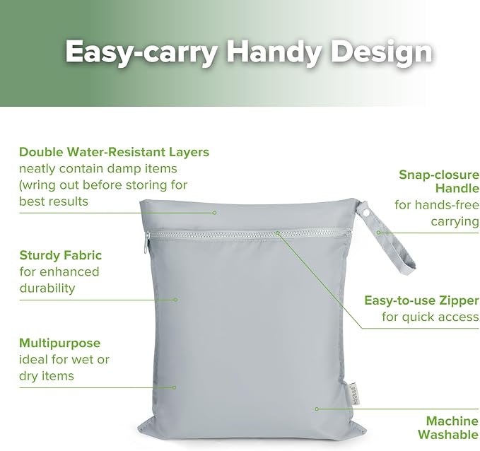- WET DRY BAG: These wet bags for baby items are perfect for containing damp items like cloth diapers or swimwear, making them essential for any diaper bag.
