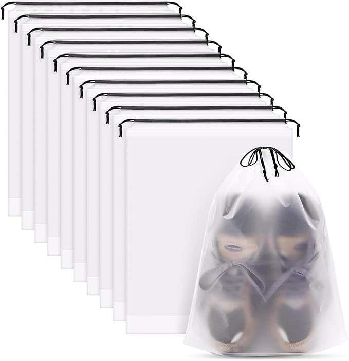 - Widely Use:The clear shoe bags can be also as a storage bag for toiletry bag, packing bags, gym accessories, laundry bags travel, dust bag, show bags, sport bags, drawstring christmas gift bags