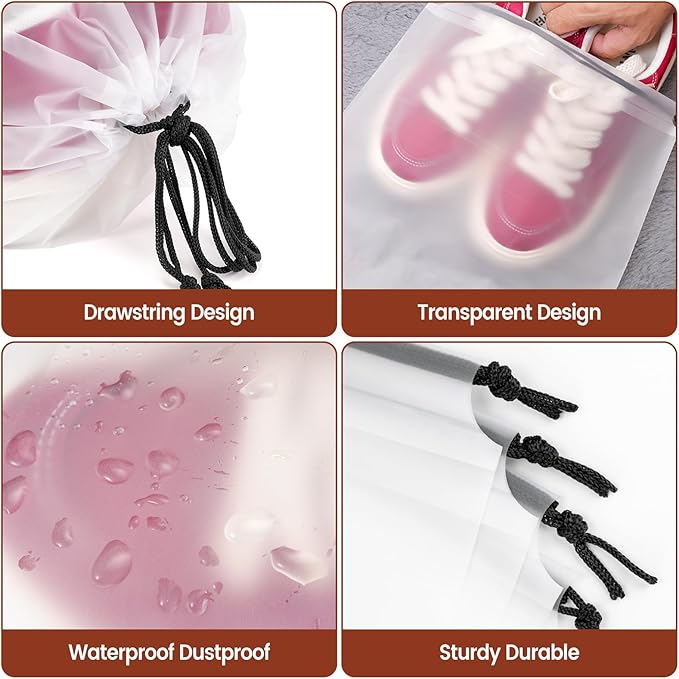 - MATERIAL: Crafted from premium PE material, these shoe bags offer waterproof and dust,proof protection that is both durable and stain,resistant,they can easily accommodate heavier items without deforming or breaking ensuring excellent value for money with each use