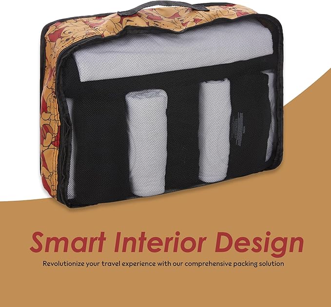 - Complete 5-Piece Organizer Set: Master packing with these luggage bags for travel: large compression cube (13" x 18" x 5.5") for clothes, medium organizer (12" x 16" x 5.5") for essentials, small packaging cube (11" x 13" x 5.5") for accessories, and flat pouch (6" x 10") for documents. Featuring Disney-themed accents and mesh panels for visibility. Perfect for organizing any suitcase or carry-on, these travel bags organizer for luggage include convenient handles and durable zippers.