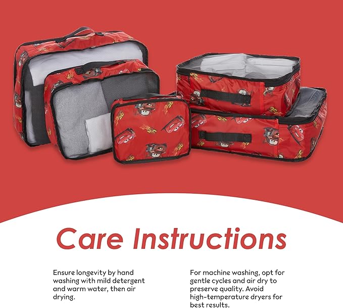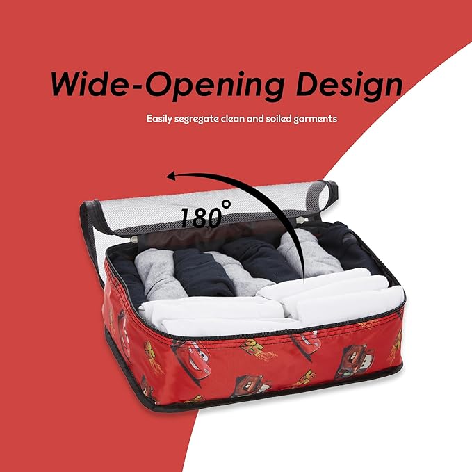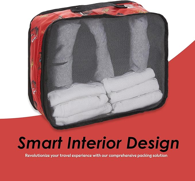 - Complete 5-Piece Organizer Set: Master packing with these luggage bags for travel: large compression cube (13" x 18" x 5.5") for clothes, medium organizer (12" x 16" x 5.5") for essentials, small packaging cube (11" x 13" x 5.5") for accessories, and flat pouch (6" x 10") for documents. Featuring Disney-themed accents and mesh panels for visibility. Perfect for organizing any suitcase or carry-on, these travel bags organizer for luggage include convenient handles and durable zippers.