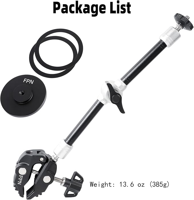 - **All-Metal Construction**: The FPN All-Metal Phone Holder is crafted from high-quality aluminum alloy, featuring a robust super clamp, a durable magic arm, and a magnetic adapter. This makes it highly resistant to corrosion and rust, ensuring long-lasting performance.