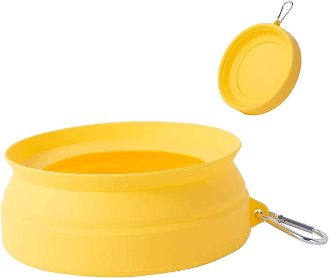 SLSON Spill Proof Dog Water Bowl for Cars,Collapsible No Splash Dog Travel Bowls Integrated Molding Portable Pet Bowl for Road Trip Truck,RV,SUV,Boat Accessories (Yellow)