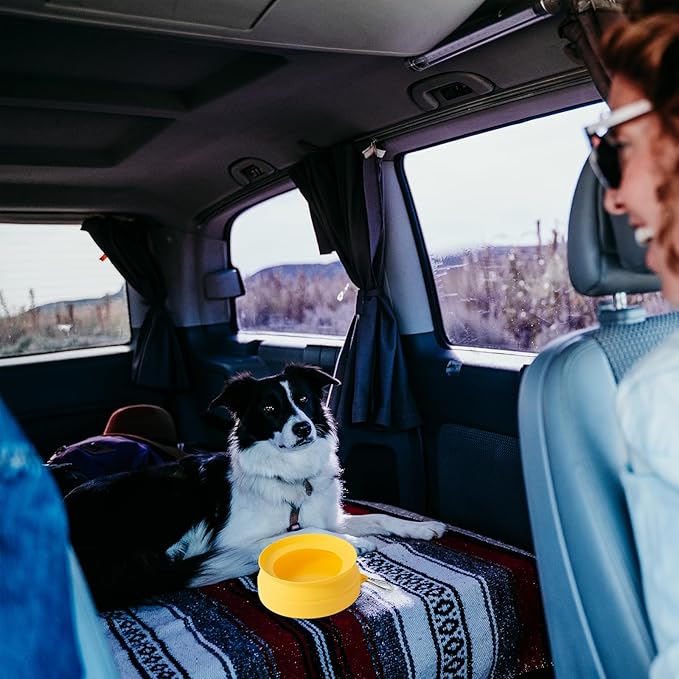 - COLLAPSIBLE SPILL PROOF BOWL: specially designed water bowls for pets road trips, featured with tapered lip and wider trim to reduce water splashing when travelling,keep your pets well hydrated in the car.Collapsible and convenient to store.