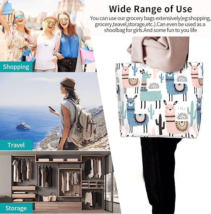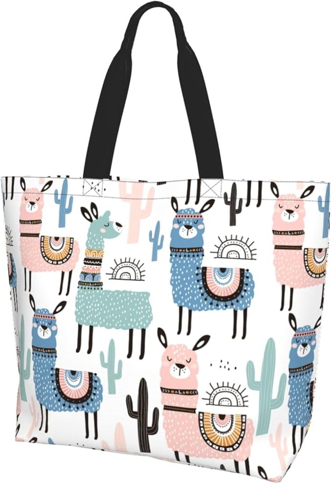 - Multiple Functions: This llama tote bag can be used as work tote bag, travel tote bag, gym tote bag for women, gift bags large, shopping bags for groceries, kitchen reusable grocery bags, waterproof tote bag. This portable beach bag will be your ideal partner for daily use.