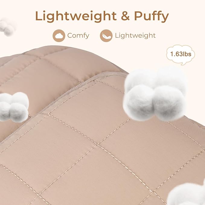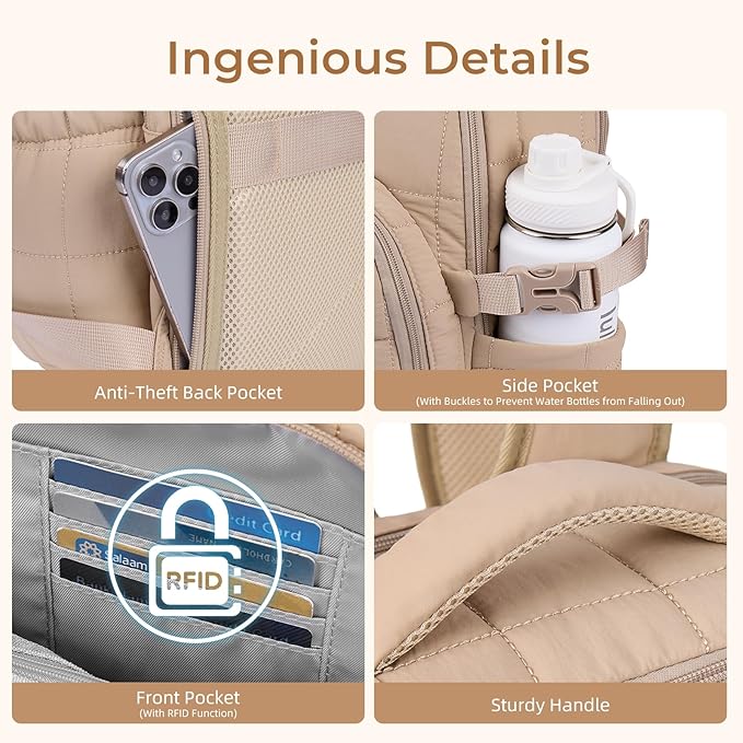 CLUCI 17.3 Inch Laptop Backpack for Women, Anti Theft Travel Backpack, Puffer Quilted Work Backpack, Water Resistant College Bookbag, Carry on backpack with RFID (Khaki)