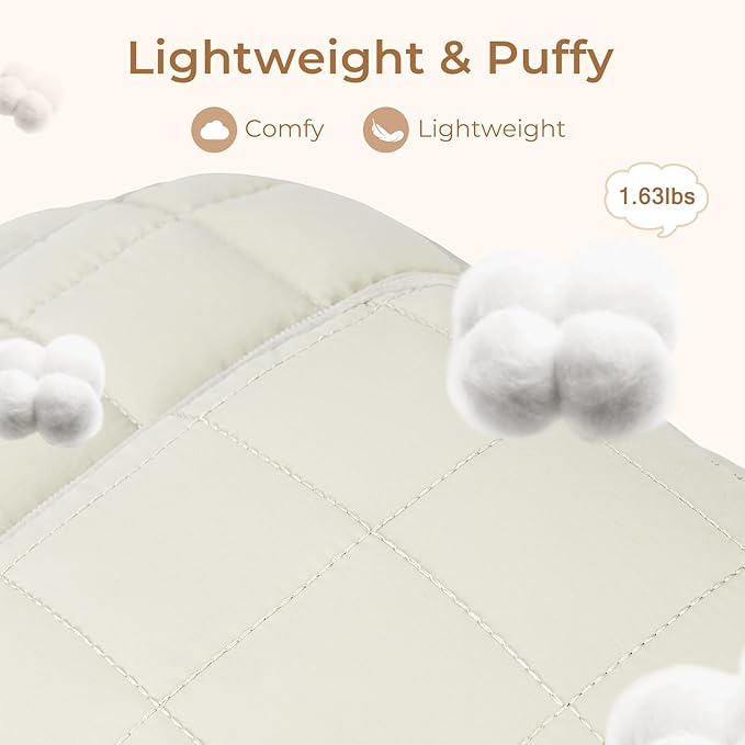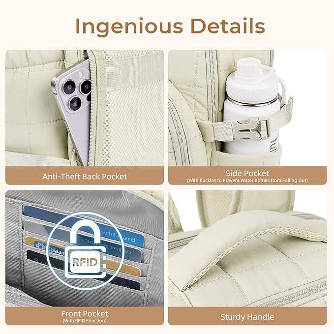 CLUCI 17.3 Inch Laptop Backpack for Women, Anti Theft Travel Backpack, Puffer Quilted Work Backpack, Water Resistant College Bookbag, Carry on backpack with RFID (Beige)
