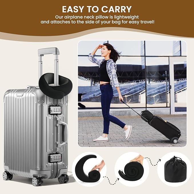 Neck Pillow, Travel Pillow uses Memory Foam to Support Neck Comfort, Ideal Companion for Airplane and car Travel, Compact, Convenient, and Versatile Airplane Sleep Pillow(Black)