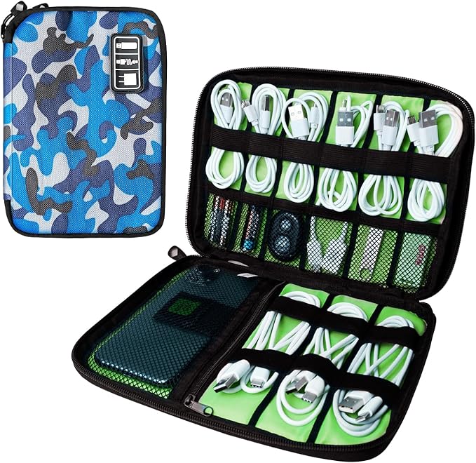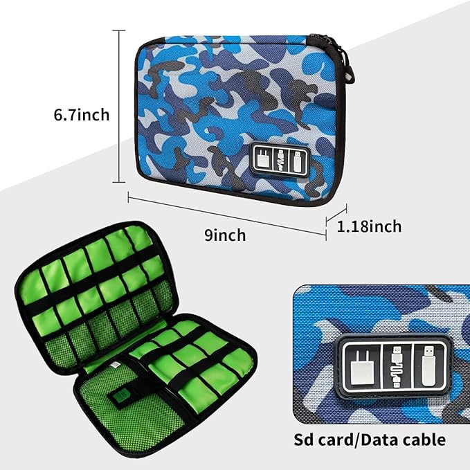 Electronics Travel Organizer,Portable Waterproof Electronic Travel Storage Bag for Small Charging Cord Storage,Charger,SD Card etc,for Travel,Business-Blue Camouflage
