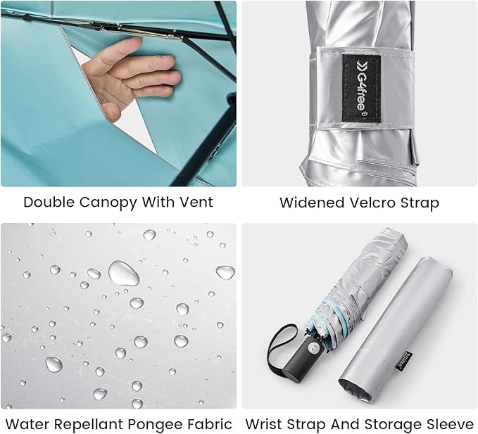 G4Free 43 Inch Travel Umbrella Ultralight UPF 50+ UV Protection Compact Sun Umbrella, Double Canopy Super Slim Small Portable Automatic Anti-bounce Close