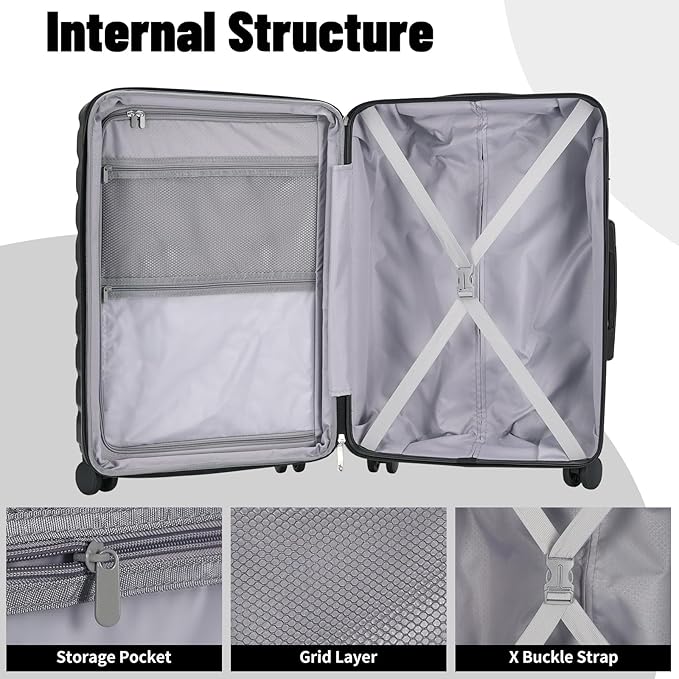 - 3 Piece Set: Set contains a carry-on 20" airline approved luggage, a 24" checked suitcase, and a 28" large luggage. Specifically designed for 24 and 28 inch luggage, the extension layer adds more capacity to maximize your packaging capacity.