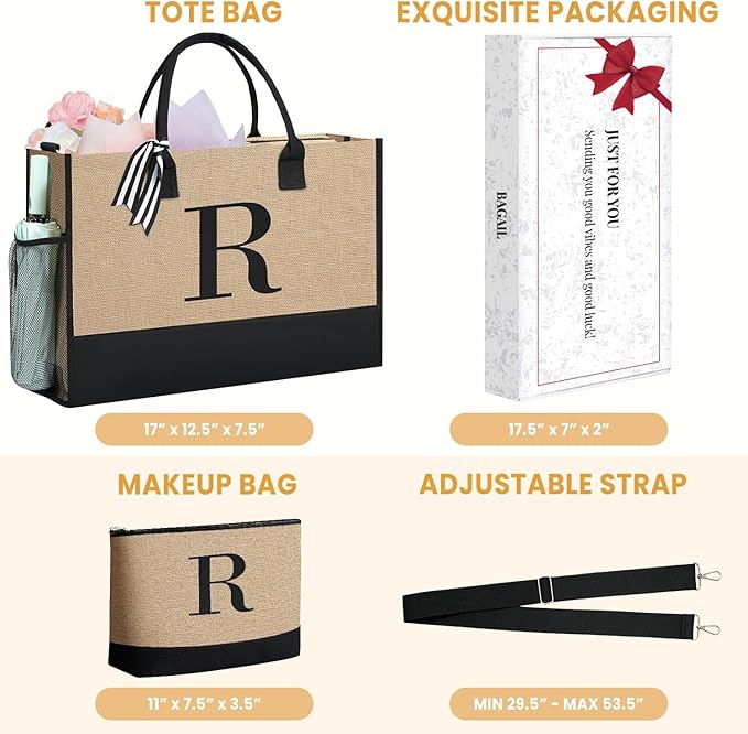 BAGAIL Initial Tote Bag, Personalized Birthday Gifts for Women, Teacher, Friends, Mom, Wedding, Monogrammed Beach Bag