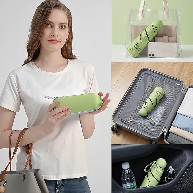 - Pocket umbrella: With a 40-inch arc and a 35.4-inch diameter, this mini travel umbrella is perfect for concealing in your purse or bag when you’re on the go! Folds to an ultra-compact 6.9 inches, makes the umbrella great for travel, as this super lightweight umbrella collapses about the size of your palm