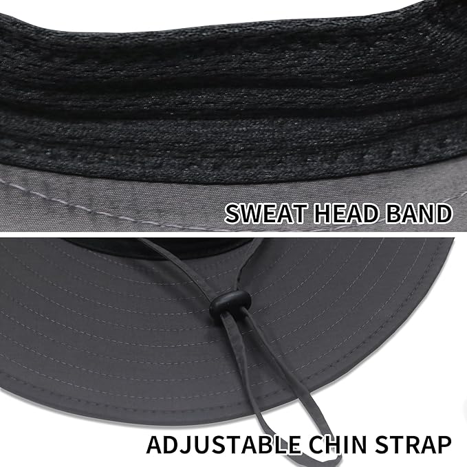 - COMFORTABLE & BREATHABLE: Breathable mesh sides ensure the effective air flow. The sweatband inside the sun fishing hat and the breathable lining can efficiently absorbs sweat for your comfort even if wear the sun hat all day