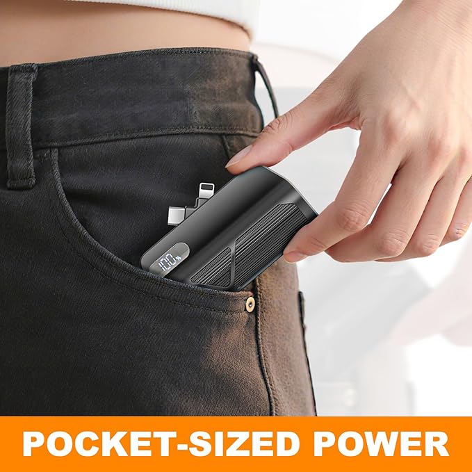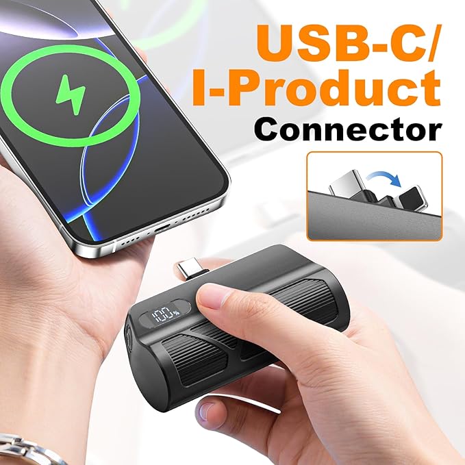 - USB-C and I-Product Port Charging: Mini portable charger convenient rotatable design allows you to easily charge different cell phone ports without getting tangled.( When charging two phones at the same timean additional USB-C to USB-C cable is required).