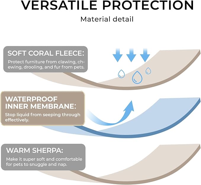 - WATERPROOF & LEAKPROOF: One side features soft thick fleece, the other boasts plush sherpa backing—double the coziness to keep your pets warm, dry, and snug. Reinforced with an internal waterproof lining, it forms a reliable protective layer against liquids, including pee, from seeping through. NOTE: The fiber surface itself is not waterproof!