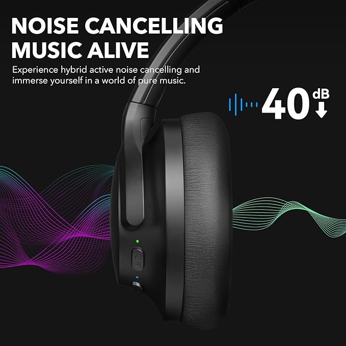 1Mii Y8 Active Noise Cancelling Headphones, Wireless Headphones Over Ear Bluetooth 5.3, LDAC Hi-Res Audio,75H Playtime with Transparent Mode for Work/Travel/Home/Office-Black