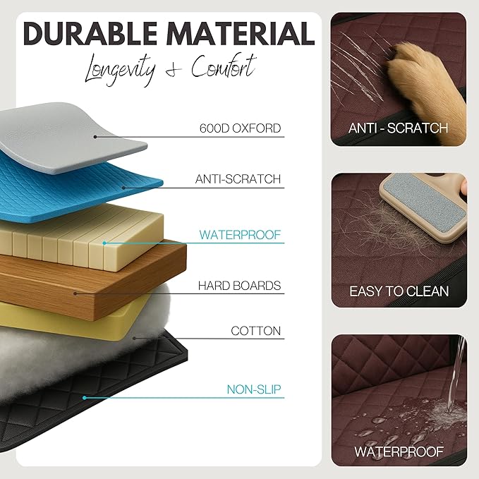- Anti-Slip & Secure Fit for a Safer Ride: No more slipping and shifting! Our anchor system, non-slip rubber backing, and removable support plates ensure the cover stays firmly in place, keeping your pet safe and secure while you drive.