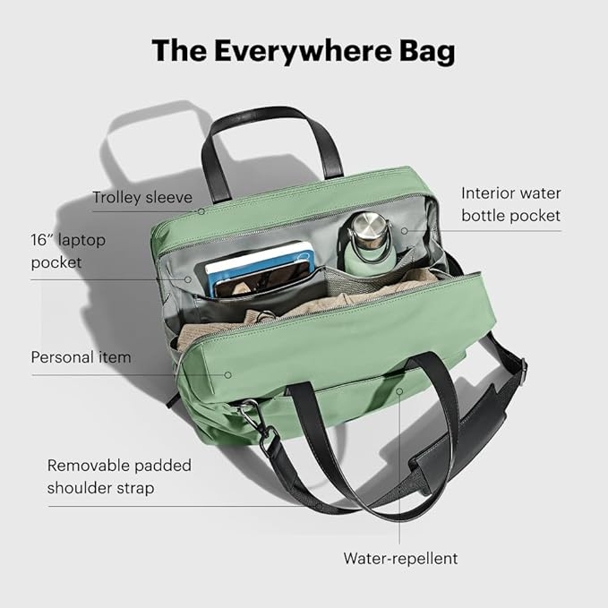 Away Everywhere Bag, Padded Laptop Sleeve, Water Resistant For Every Day Use, Removable Shoulder Strap, Daily Work Bag, Travel Essential Approved Personal Item, Sea Green