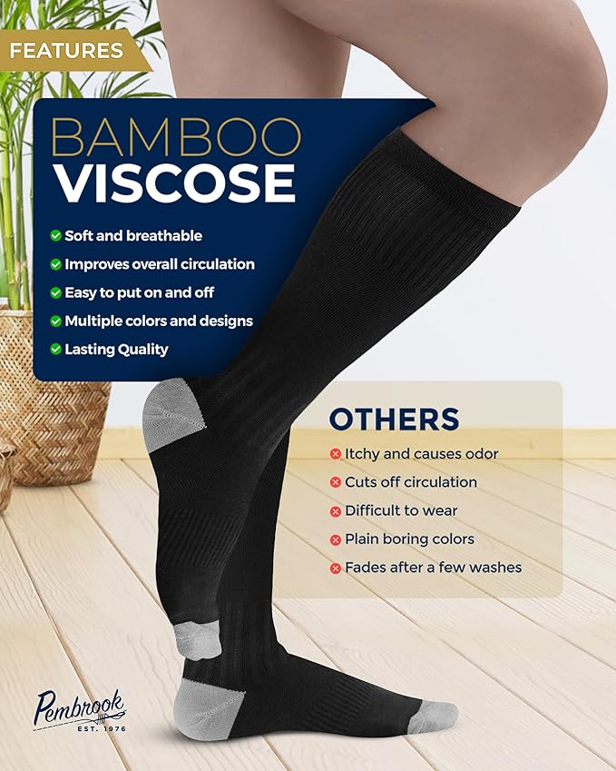 - Premium Material - Pembrook mens and womens light compression socks feature viscose derived from bamboo. With moisture-wicking and breathable properties, they are designed to keep you fresh and cool.