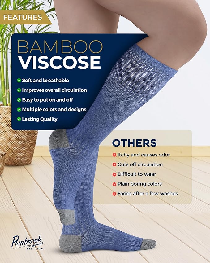 - Premium Material - Pembrook mens and womens light compression socks feature viscose derived from bamboo, ensuring enduring freshness. With moisture-wicking and temperature regulation, these socks can withstand any climate.