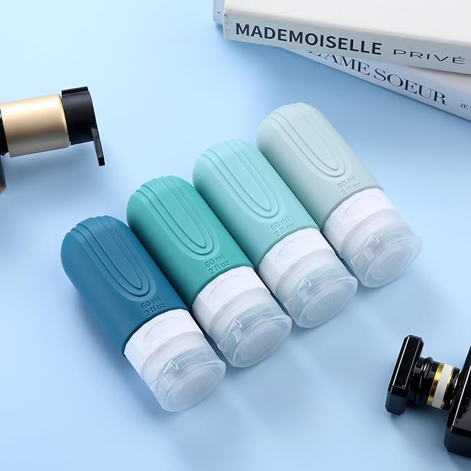 - TSA carry on approval: 4 pack 2 oz silicone travel bottles, very suitable for shampoo, conditioner, shower gel, lotion, hand sanitizer and shower gel. It is equipped with a high-quality zipper transparent wash bag, which saves space and allows you to travel long distance freely like a professional.