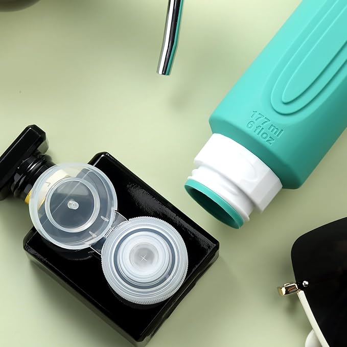 - Oversize 6oz travel bottle: Featuring a PVC toiletry bag, these travel-sized silicone bottles are perfect for storing and dispensing your favorite shampoos, lotions, and other liquids. Designed for convenience and durability, this travel set is a must-have for all your adventures.